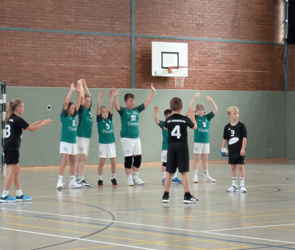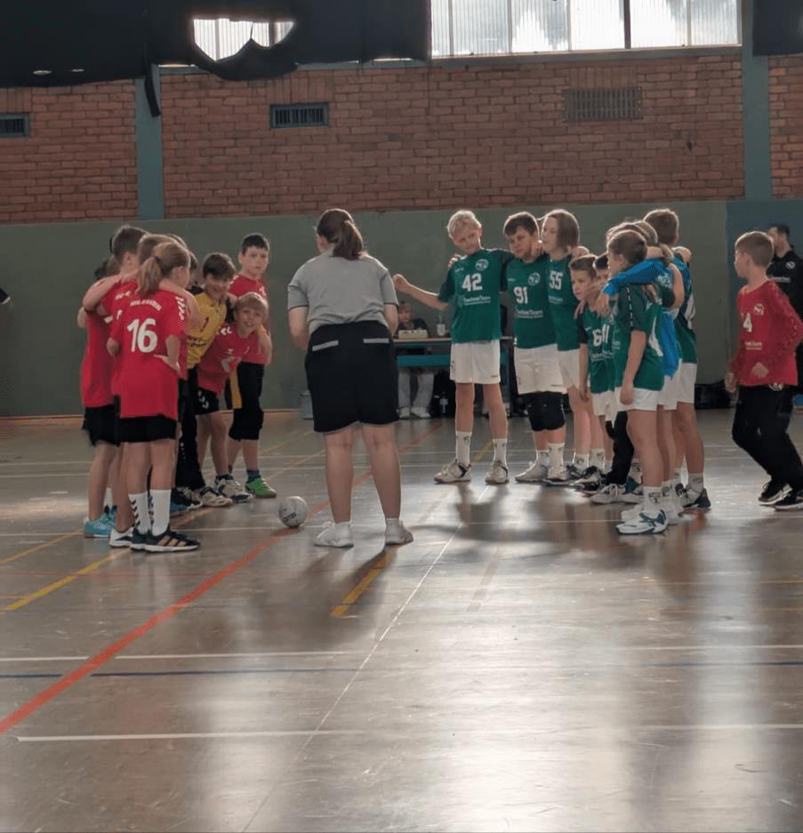 Nachdem das Kampfgericht um Heidi den Spielplan neu sortiert hatte, trafen wir nun im ersten Spiel auf die Erstvertretung unserer HSG. Viel Zeit zum Reinkommen brauchten wir nicht und Edwin stellte mit einem 3-Tore-Lauf nach gut zwei Minuten auf 3:0 für uns. Doch die HSG I schüttelte sich kurz durch und schaffte binnen drei Minuten den Ausgleich zum 3:3. Schnell war zu erkennen, dass es heute nicht ganz so einfach wird, wie noch in den Spielen zuvor und so entwickelte sich ein munteres Spielchen: Tim und Phil erhöhten mit zwei schönen 1:1 Situationen wieder auf +2 und die HSG I verkürzte nochmal auf ein Tor (7.) ehe Emil und Edwin mit jeweils zwei Treffern den Pausenstand zum 9:4 einloggten. Insgesamt täuschte das Ergebnis bis dahin jedoch etwas über den tatsächlichen Spielverlauf hinweg. Bei uns schlichen sich einige kleine technische Fehler ein und in einigen Angriffssituationen waren wir ungewohnt unkonzentriert. Auch das Rückzugsverhalten wurde nicht konsequent umgesetzt, sodass Micha im Tor einige Bälle entschärfen musste. Mit der Pausenansprache im Ohr versuchte die Mannschaft es in der zweiten Halbzeit wieder konzentrierter anzugehen. Eric ersetzte Micha nun rotationgemäß im Tor, während Tim und Edwin mit zwei schnellen Toren die Führung auf 11:4 ausbauten. Nach dem 5. Tor der HSG I lief es dann so richtig rund für uns: Edwin, Milan mit seinem ersten Tor heute und zweimal Emil sorgten für einen +10 Abstand (16.). Danach wurde es Zeit fürs große Durchrotieren: Milan, Malte, Odin und Miri durften sich in den letzten Minuten nun auch probieren. Das störte etwas den Spielfluss und somit konnte die HSG I noch ein wenig Ergebniskorrektur betreiben und den Schlusspunkt zum letztendlich verdienten 16:9 Sieg setzen.